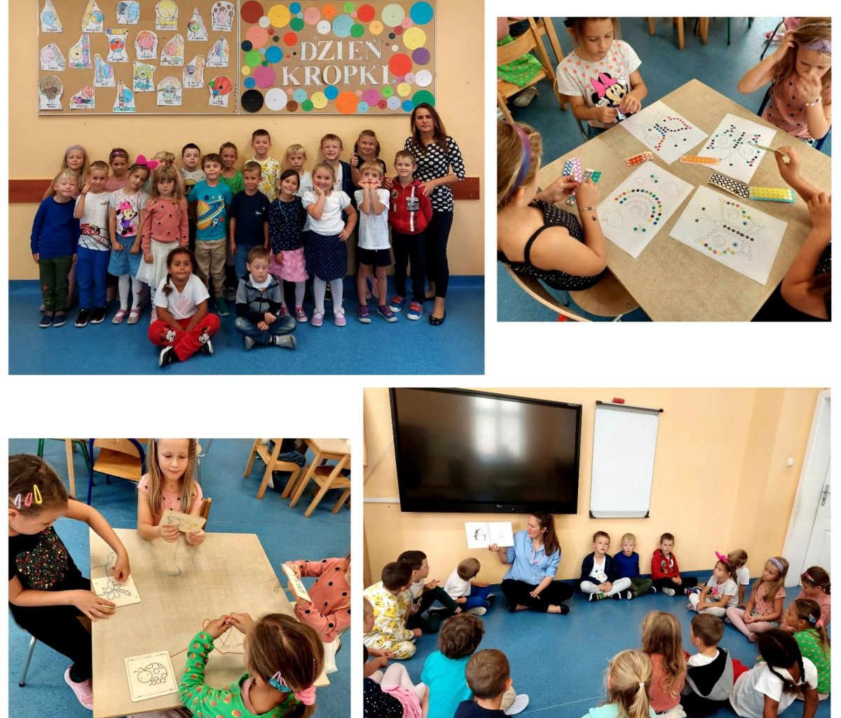 Dnia 15 września uczniowie klas 0–3 naszej szkoły świętowali Międzynarodowy Dzień Kropki – dzień kreatywności, odwagi i odkrywania talentów. Dzieci poznały historię małej Vashti z książki The Dot, której „kropka” stała się początkiem wiary we własne możliwości. Na zajęciach uczniowie wykonywali różnorodne prace plastyczne z kropką w roli głównej, uczestniczyli w zabawach ruchowych oraz rozwiązywali zadania rozwijające wyobraźnię. Był to radosny dzień pełen twórczej energii, w którym każdy mógł odkryć, że nawet najmniejsza „kropka” może być początkiem czegoś wielkiego! Galeria zdjęć.